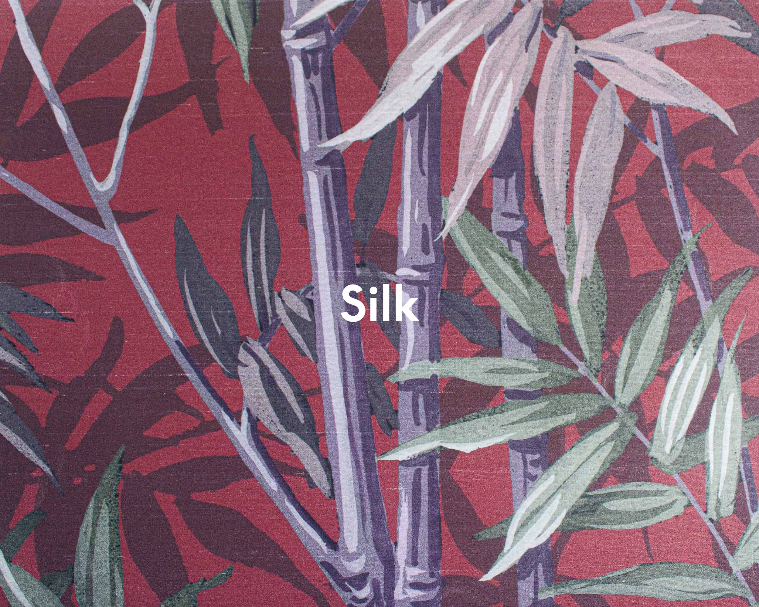 As part of the Aracne Collection, this wallpaper is available in both Silk and Linen finishes. The Silk version enhances the artwork’s vivid colors and soft sheen, offering a luxurious, luminous effect that makes every detail come to life.