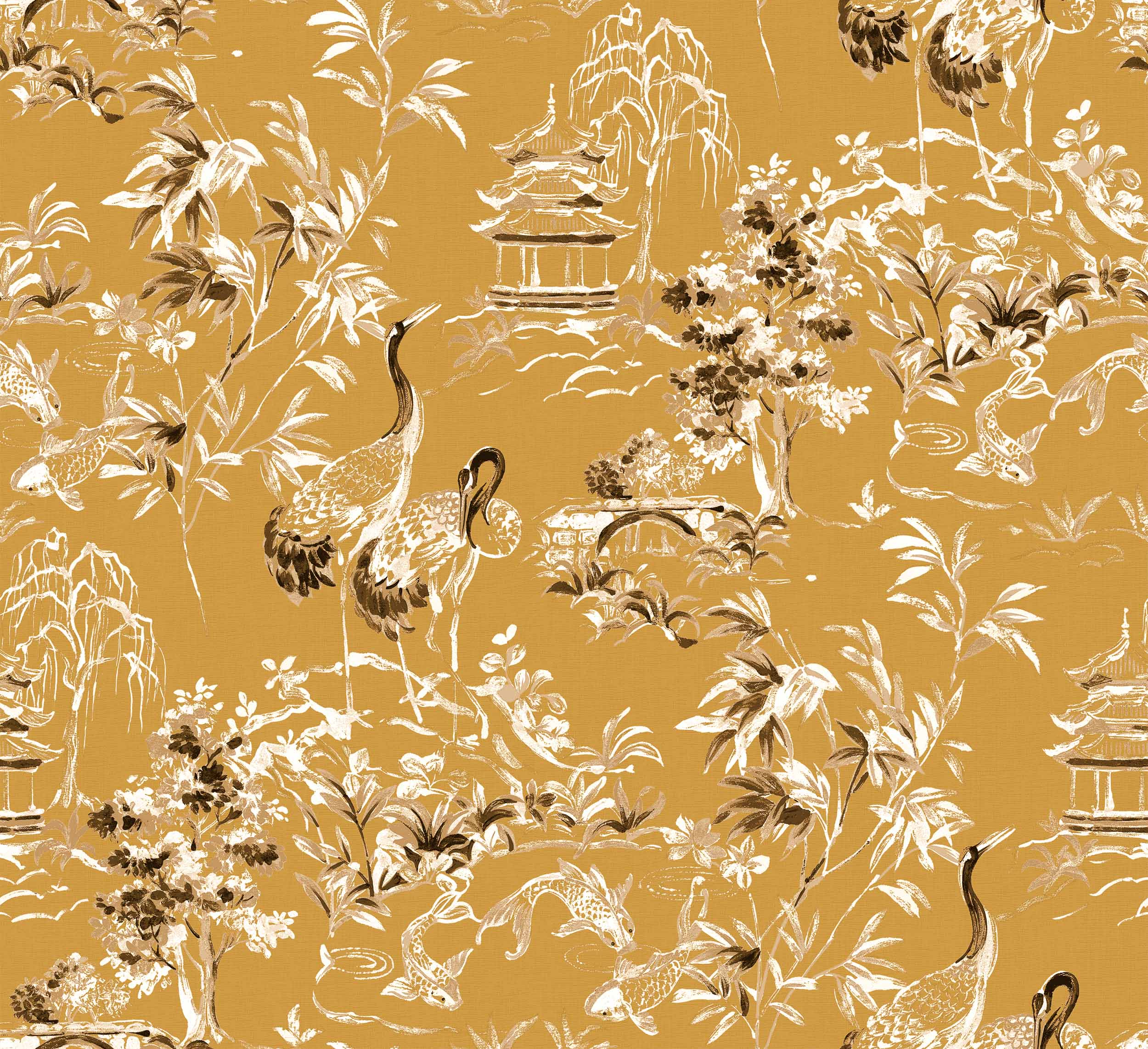 Ming Pagoda Amber is perfect for those looking to bring nature and elegance into their home. Whether redecorating a single room or transforming your entire space, this wallpaper creates an inviting, peaceful atmosphere. It’s the ideal choice for any décor enthusiast seeking timeless beauty and a tranquil ambiance.