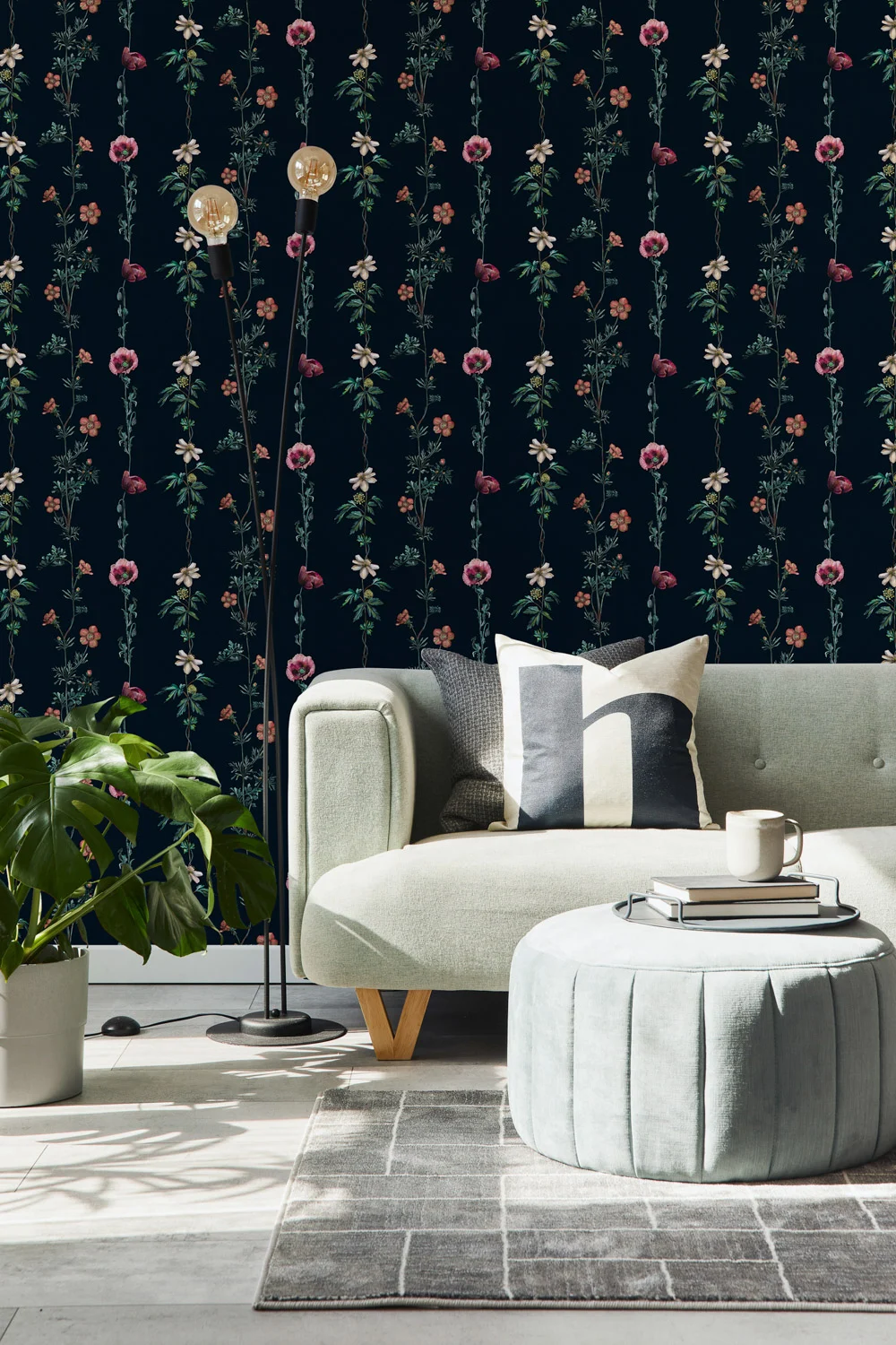 Enhance your décor with Climbing Flowers Marine wallpaper, where timeless floral beauty meets modern sophistication.