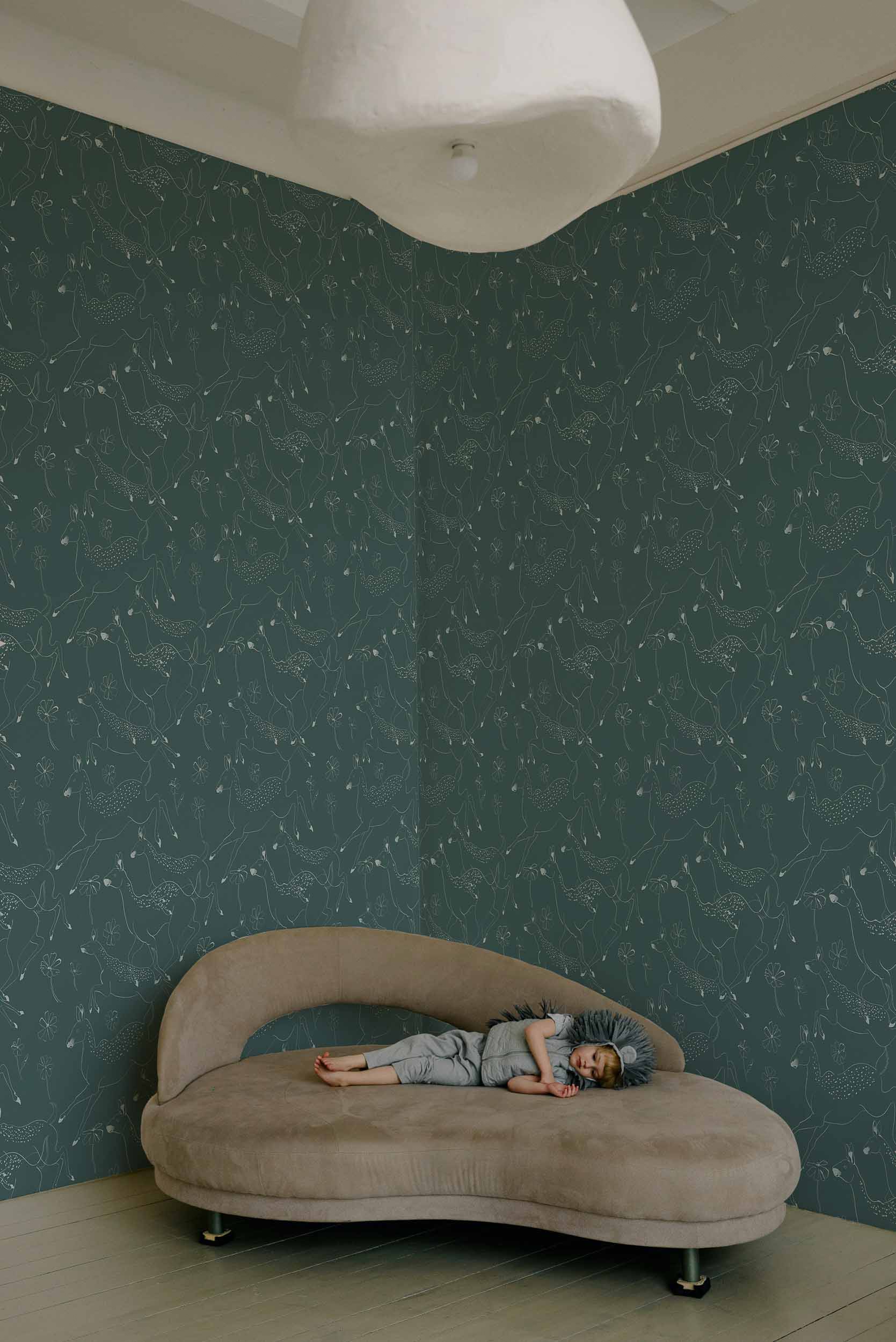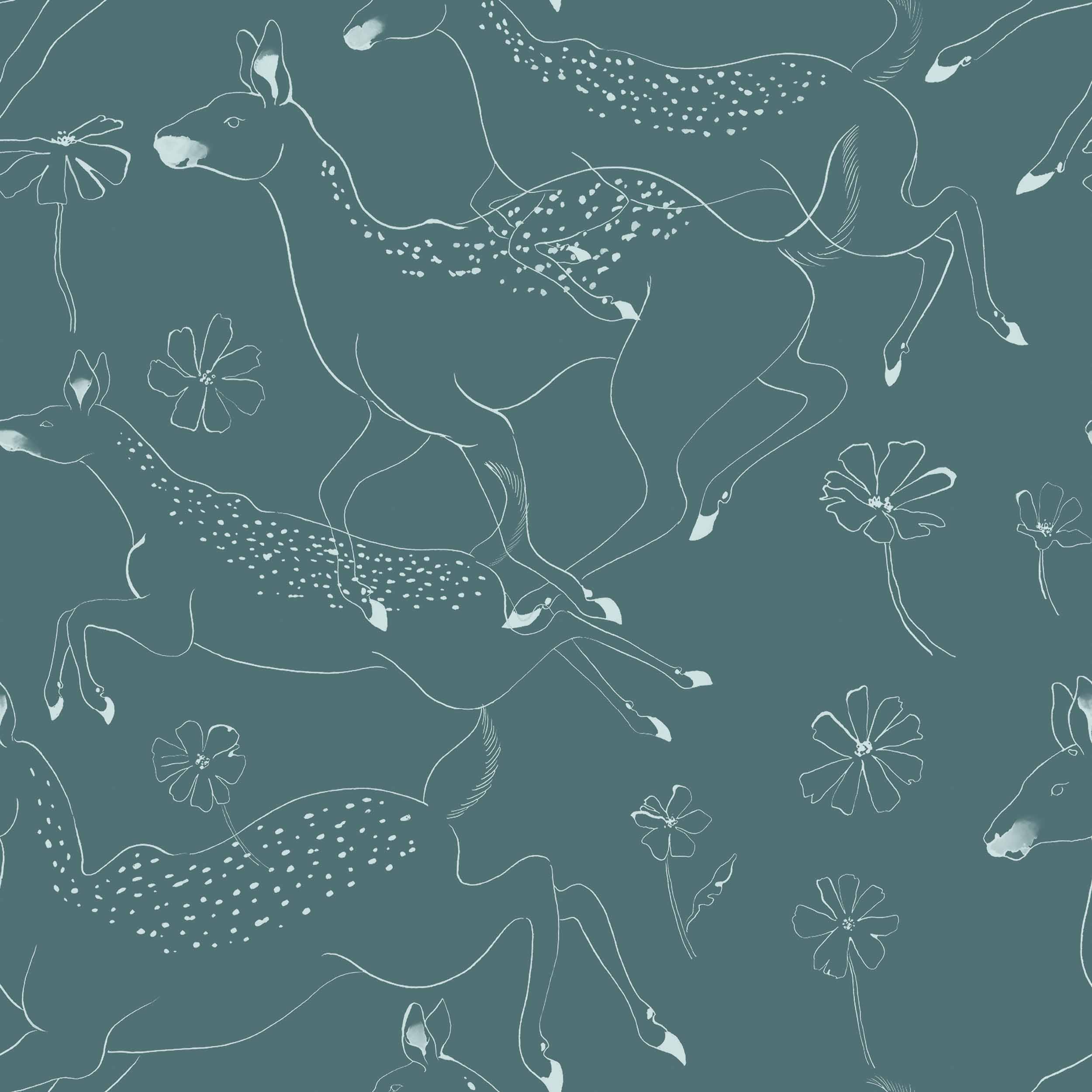 Bring the beauty of nature into your little one's space with the Coordonné Random Kids Jumping Bambis - Aqua wallpaper. This charming design features delicate deer leaping gracefully across a beautifully illustrated background. The soft green tones create a peaceful and refreshing ambiance, making it a perfect choice for nurseries, playrooms, and themed bedrooms.