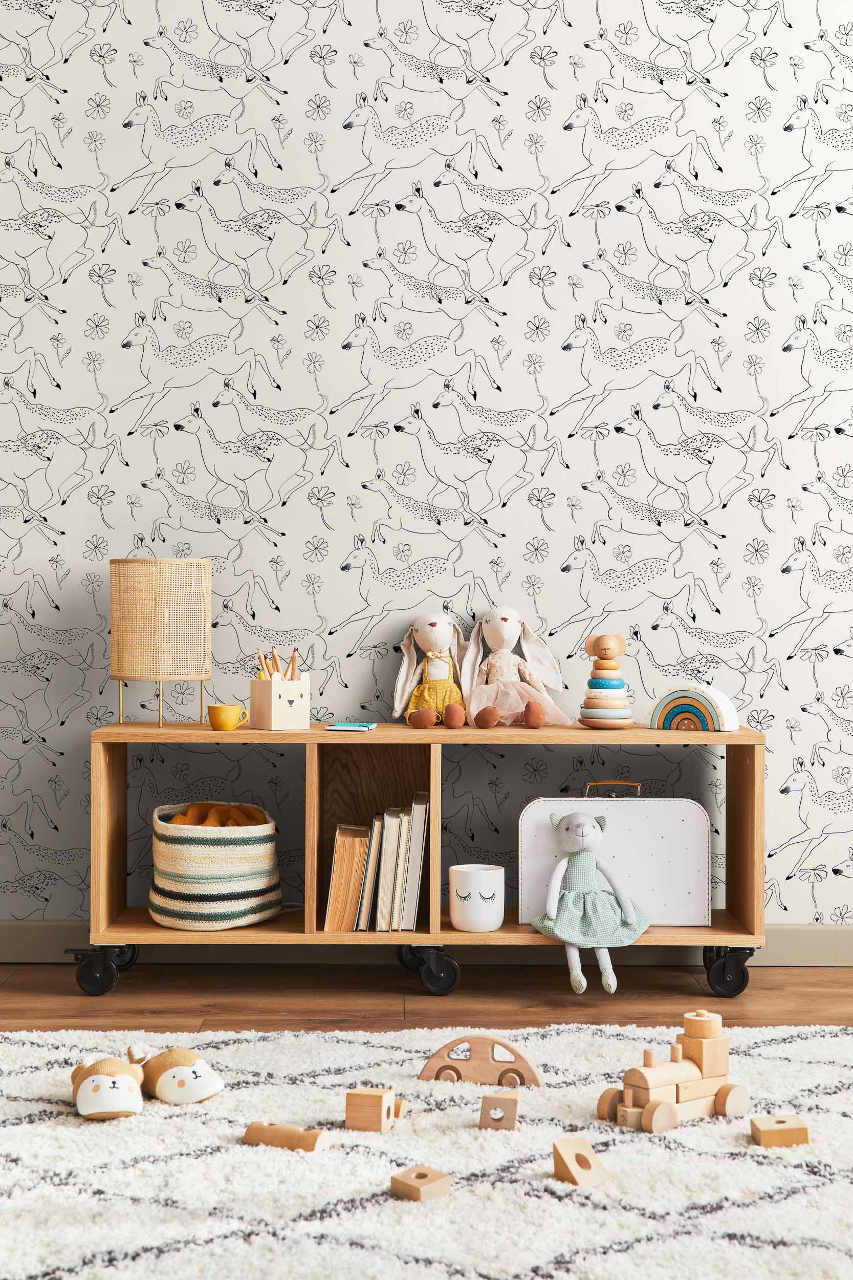 If you want to create a peaceful and charming space, the Coordonné Jumping Bambis Linen wallpaper is a perfect choice. Featuring playful deer gracefully leaping across a beautifully illustrated backdrop, this design adds warmth and whimsy to any child’s room. Meanwhile, the soft white and grey tones provide a neutral yet elegant look, making it easy to match with different decor styles.