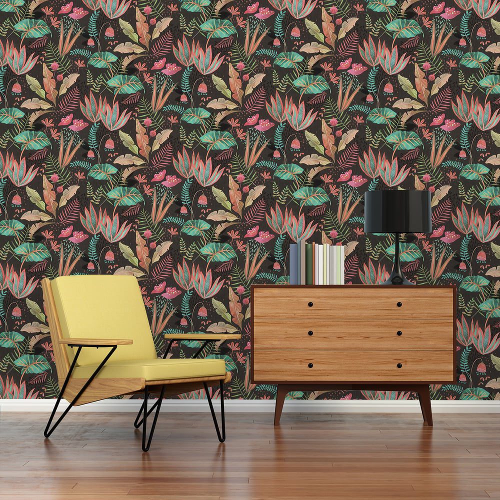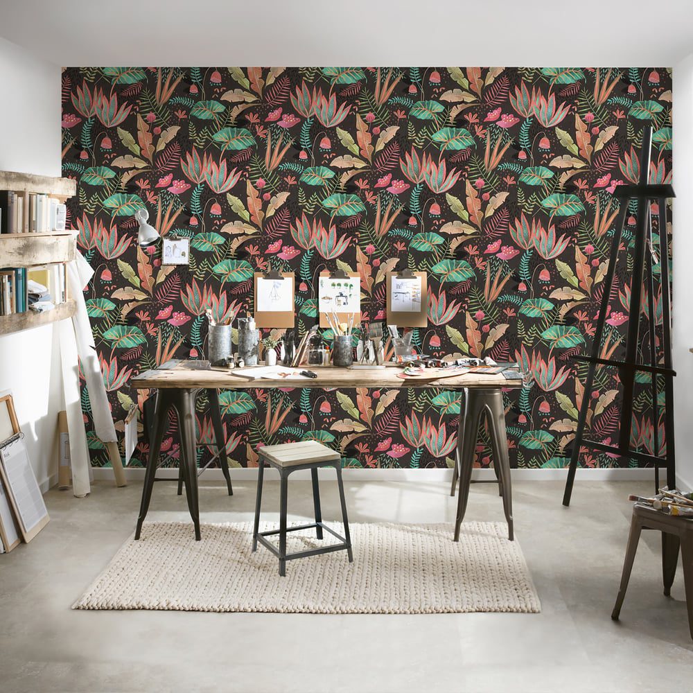 Mix Leaves is the perfect wallpaper to add the playful wow-factor to your room. The dramatic black background is highlighted by brightly coloured stylised tropical leaves and flowers created in chunky colour blocks. Use as a feature wall or use this on all four walls to get the most out of this deep, striking product.
