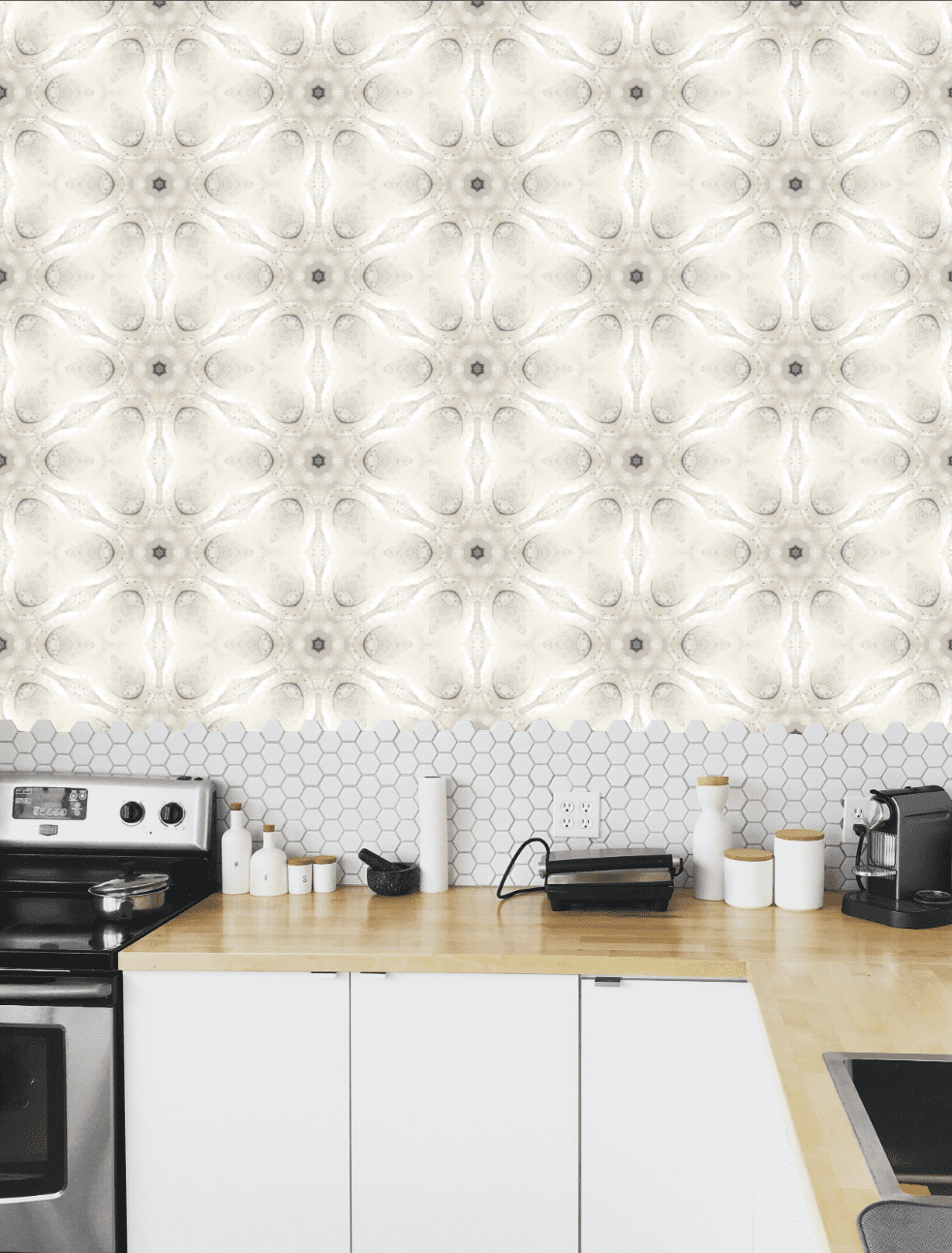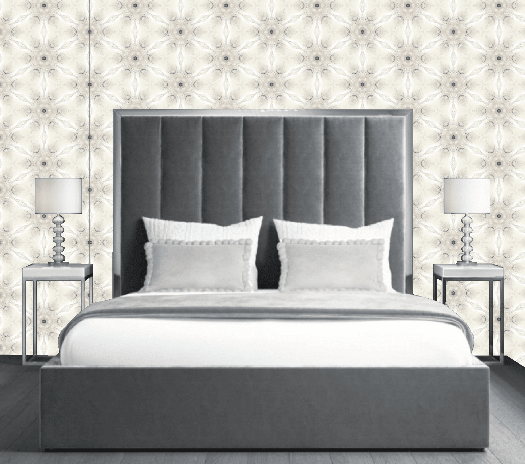 In addition, the design includes classic architectural shapes such as stars, florettes, and trefoils. These symbols bring a sense of history and make the wallpaper even more special. As a result, Julia Clare Beyond Antiquity - Sculptural Elegance Silver is a great choice for anyone who wants to add elegance and personality to their space.