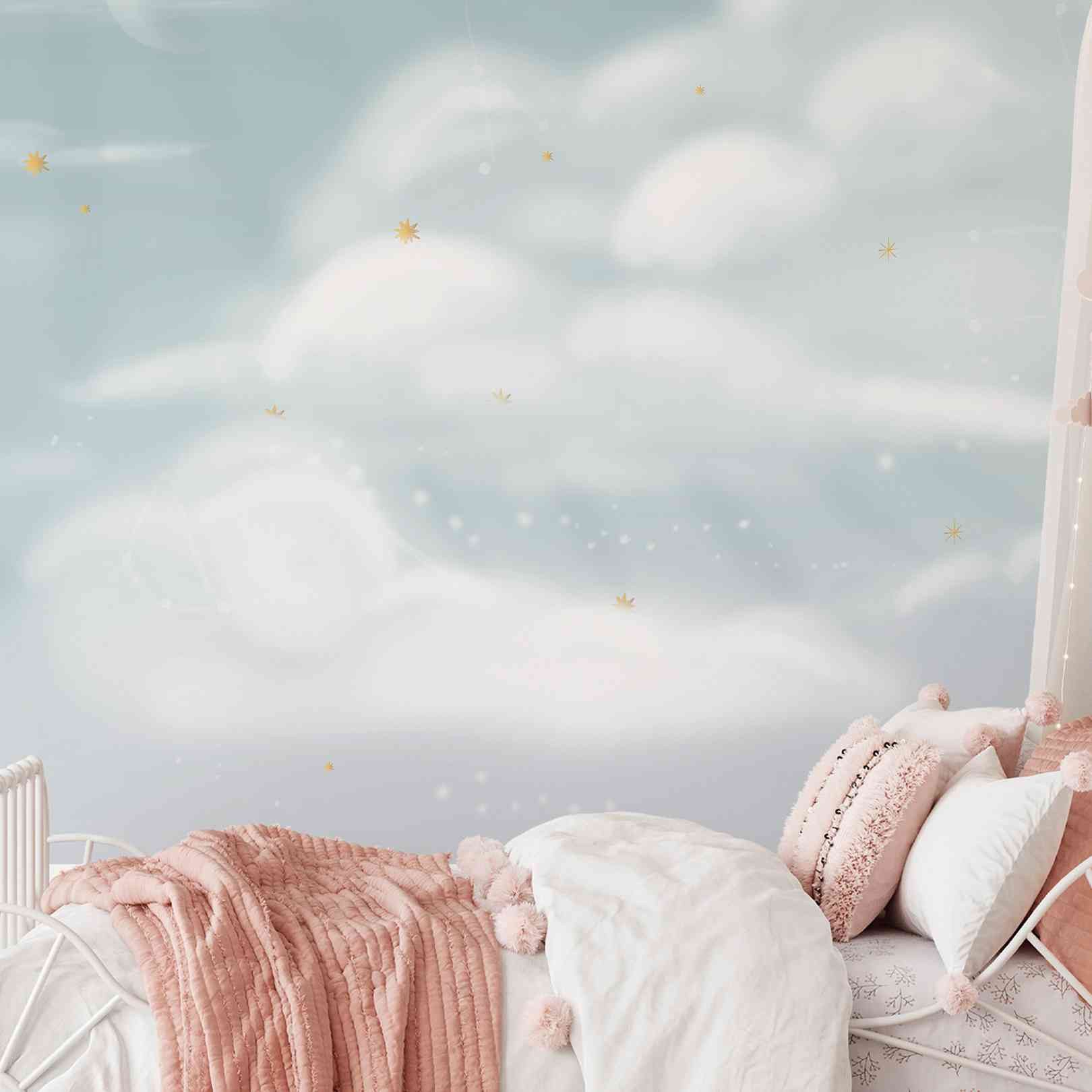 This clouds wallpaper is more than just decor—it’s an invitation to pause, breathe, and let your thoughts wander. Each shade and contour mimics the shifting sky, offering visual depth and a subtle sense of movement. Ideal for bedrooms, nurseries, reading corners, or any area where serenity is needed, the gentle palette helps open up your space and promote relaxation.